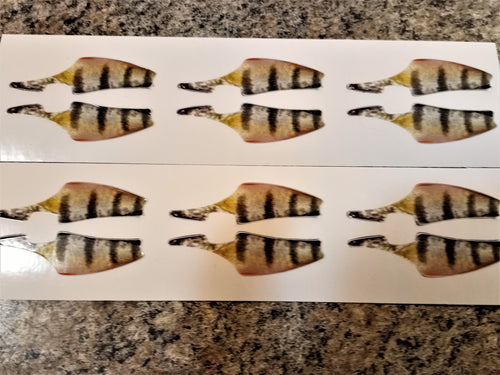 ONEIDA LAKE CUSTOM PRINTED FORAGE MINNOW BLADE BAIT DIE CUTS 6 PAIR PUMPKINSEED